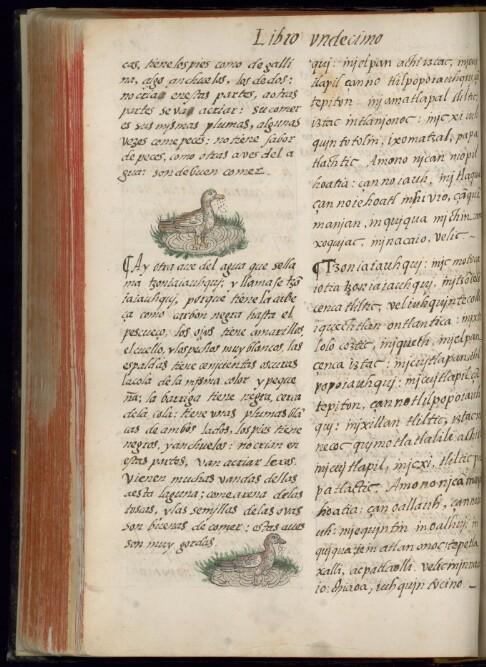 | Visual Content and Iconography | atl tlacua tototl zacatl (grass) yolcatl, yolqui patlantinemi zolcanauhtli * - motetiani - -  | water to eat bird (class) grass animal, living being flying living being gadwall* anatidae (family) egg-layer, oviparous animal living in relation with water "who eats seeds, vegetables, herbs and/or insects", herbivorous, insectivorous  | agua comer ave (clase) zacate animal, ser vivo ser vivo que anda volando pato friso* anátidas (familia) ovíparo animal que vive en relación con el agua "que come semillas, verduras, hierbas", herbívoro, insectívoro  | atl tlacuahticah tototl zacatl tecuani, tlapiyalli tlen patlani zolcalnauhtli* - tlen tlacati pan tecciztli tlen anehnemi tlen quicua cuayolotl, cuatlacquetl, xihuitl, piltecuanitzitzin  | atl (nci)water (eng)agua (spa)atl (nhe) | tlacua (nci)to eat (eng)comer (spa)tlacuahticah (nhe) | tototl (nci)bird (class) (eng)ave (clase) (spa)tototl (nhe) | zacatl (grass) (nci)grass (eng)zacate (spa)zacatl (nhe) | yolcatl, yolqui (nci)animal, living being (eng)animal, ser vivo (spa)tecuani, tlapiyalli (nhe) | patlantinemi (nci)flying living being (eng)ser vivo que anda volando (spa)tlen patlani (nhe) | zolcanauhtli * (nci)gadwall* (eng)pato friso* (spa)zolcalnauhtli* (nhe) | - (nci)anatidae (family) (eng)anátidas (familia) (spa)- (nhe) | motetiani (nci)egg-layer, oviparous (eng)ovíparo (spa)tlen tlacati pan tecciztli (nhe) | - (nci)animal living in relation with water (eng)animal que vive en relación con el agua (spa)tlen anehnemi (nhe) | - (nci)"who eats seeds, vegetables, herbs and/or insects", herbivorous, insectivorous (eng)"que come semillas, verduras, hierbas", herbívoro, insectívoro (spa)tlen quicua cuayolotl, cuatlacquetl, xihuitl, piltecuanitzitzin (nhe) |