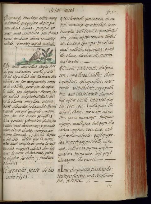 | Visual Content and Iconography | cuahuitl tlacua tototl zacatl (grass) yolcatl, yolqui - patlantinemi cocohtli - motetiani - | tree to eat bird (class) grass animal, living being landscape flying living being Inca or Mexican dove columbidae egg-layer, oviparous "who eats seeds, vegetables, herbs and/or insects", herbivorous, insectivorous | árbol comer ave (clase) zacate animal, ser vivo paisaje ser vivo que anda volando tortolita mexicana colúmbidas ovíparo "que come semillas, verduras, hierbas", herbívoro, insectívoro | cuahuitl tlacuahticah tototl zacatl tecuani, tlapiyalli tlayehyectzin (quen neci zo oncah pan ce canahya) tlen patlani cocohtzin - tlen tlacati pan tecciztli tlen quicua cuayolotl, cuatlacquetl, xihuitl, piltecuanitzitzin | cuahuitl (nci)tree (eng)árbol (spa)cuahuitl (nhe) | tlacua (nci)to eat (eng)comer (spa)tlacuahticah (nhe) | tototl (nci)bird (class) (eng)ave (clase) (spa)tototl (nhe) | zacatl (grass) (nci)grass (eng)zacate (spa)zacatl (nhe) | yolcatl, yolqui (nci)animal, living being (eng)animal, ser vivo (spa)tecuani, tlapiyalli (nhe) | - (nci)landscape (eng)paisaje (spa)tlayehyectzin (quen neci zo oncah pan ce canahya) (nhe) | patlantinemi (nci)flying living being (eng)ser vivo que anda volando (spa)tlen patlani (nhe) | cocohtli (nci)Inca or Mexican dove (eng)tortolita mexicana (spa)cocohtzin (nhe) | - (nci)columbidae (eng)colúmbidas (spa)- (nhe) | motetiani (nci)egg-layer, oviparous (eng)ovíparo (spa)tlen tlacati pan tecciztli (nhe) | - (nci)"who eats seeds, vegetables, herbs and/or insects", herbivorous, insectivorous (eng)"que come semillas, verduras, hierbas", herbívoro, insectívoro (spa)tlen quicua cuayolotl, cuatlacquetl, xihuitl, piltecuanitzitzin (nhe) |