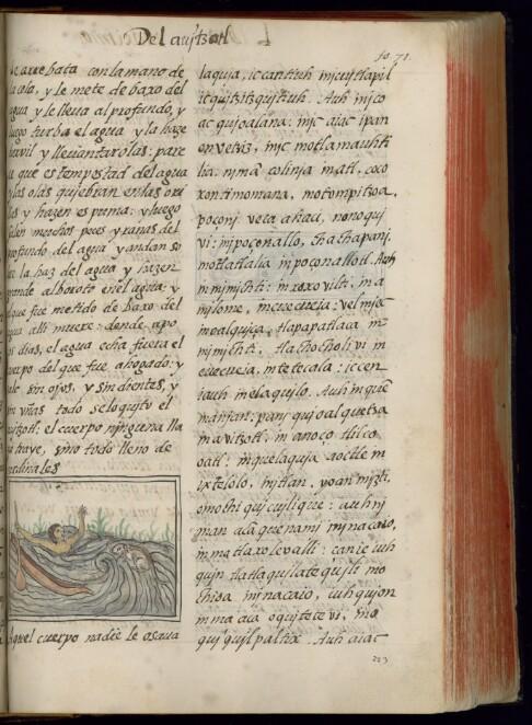 Gaillemin, Bérénice, Mary E. Clarke, Roxanne Valle, Rebecca Dufendach, Alanna Radlo-Dzur, Jeanette Favrot Peterson, Lisa Sousa, and Kevin Terraciano. “Identification of Scribal and Artist Hands (Tlahcuilohqueh) of the Florentine Codex.” Available at Digital Florentine Codex/Códice Florentino Digital, edited by Kim N. Richter, Alicia Maria Houtrouw, Kevin Terraciano, Jeanette Peterson, Diana Magaloni, and Lisa Sousa, bk. 11, fol. 71r. Los Angeles: Getty Research Institute, 2023. https://florentinecodex.getty.edu/en/book/11/folio/71r/images/0 . Accessed 12 November 2025.