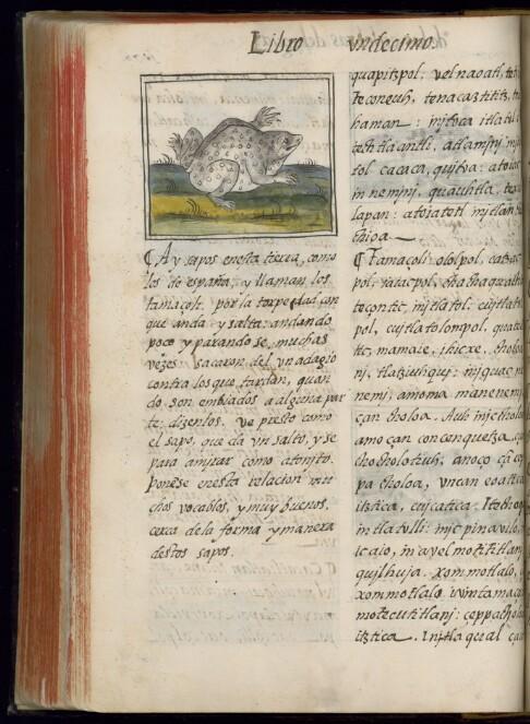 tamazolin (nci)cane toad (eng)sapo gigante (spa)quechpechin (nhe)zacatl (grass) (nci)grass (eng)zacate (spa)zacatl (nhe)yolcatl, yolqui (nci)animal, living being (eng)animal, ser vivo (spa)tecuani, tlapiyalli (nhe)- (nci)amphibia (class) (eng)anfibios (clase) (spa)tlen nemi pan atl (nhe)- (nci)anura (order) (eng)anuros (orden) (spa)[tlamantli xoquelochin] (nhe)motetiani (nci)egg-layer, oviparous (eng)ovíparo (spa)tlen tlacati pan tecciztli (nhe)- (nci)animal living in relation with water (eng)animal que vive en relación con el agua (spa)tlen anehnemi (nhe)- (nci)"who eats seeds, vegetables, herbs and/or insects", herbivorous, insectivorous (eng)"que come semillas, verduras, hierbas", herbívoro, insectívoro (spa)tlen quicua cuayolotl, cuatlacquetl, xihuitl, piltecuanitzitzin (nhe)