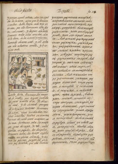 Sahagún, Bernardino de, Antonio Valeriano, Alonso Vegerano, Martín Jacobita, Pedro de San Buenaventura, Diego de Grado, Bonifacio Maximiliano, Mateo Severino, et al. Historia general de las cosas de Nueva España (Florentine Codex), Ms. Mediceo Palatino 218–20, Biblioteca Medicea Laurenziana, Florence, MiBACT, 1577. Available at Digital Florentine Codex/Códice Florentino Digital, edited by Kim N. Richter, Alicia Maria Houtrouw, Kevin Terraciano, Jeanette Peterson, Diana Magaloni, and Lisa Sousa, bk. 2, fol. 28r. Los Angeles: Getty Research Institute, 2023. https://florentinecodex.getty.edu/en/book/2/folio/28r/images/0 . Accessed 12 November 2025.