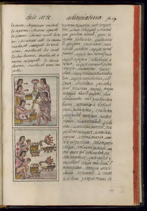 Cite: "Book 4: The Soothsayers", fol.69r, Getty Research Institute, 2023. https://florentinecodex.getty.edu/en/book/4/folio/69r/images/0 , Accessed 19 December 2024