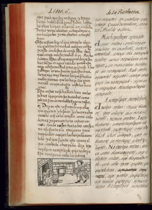 | Visual Content and Iconography | calli xochitl necuacehualhuiloni tentzontli tilmahtli tlacualli, neucayotl xamitl mahpilhuia tlalia petlatl tamalli chiquihuitl, tompiyahtli tepantli oquichtli nelpiloni molcaxitl - - - - | house, building flower hat beard cloak food brick, adobe to finger point to sit reed mat tamale basket, small deep basket wall man belt tripod mortar, sauce bowl breeches ruff tunic shoes | casa, edificio flor sombrero barba tilma, manta comida ladrillo, adobe señalar, indicar sentar petate tamal chiquihuite, pequeña canasta profunda pared hombre cinturón molcajete calzas lechuguilla ropilla calzado (zapatos) | calli xochitl tzonecahuilli tentzon tilma tlacualli tetl tlamanextia mocehuihtoc petlatl chichiquilli chiquihuitl, cuachiquihuitl tlapepecholli tlacatl cintoron chilcaxitl tlamantli pantalon quechbalo cotomitl cototztzin tlen tlacameh tecactli | calli (nci)house, building (eng)casa, edificio (spa)calli (nhe) | xochitl (nci)flower (eng)flor (spa)xochitl (nhe) | necuacehualhuiloni (nci)hat (eng)sombrero (spa)tzonecahuilli (nhe) | tentzontli (nci)beard (eng)barba (spa)tentzon (nhe) | tilmahtli (nci)cloak (eng)tilma, manta (spa)tilma (nhe) | tlacualli, neucayotl (nci)food (eng)comida (spa)tlacualli (nhe) | xamitl (nci)brick, adobe (eng)ladrillo, adobe (spa)tetl (nhe) | mahpilhuia (nci)to finger point (eng)señalar, indicar (spa)tlamanextia (nhe) | tlalia (nci)to sit (eng)sentar (spa)mocehuihtoc (nhe) | petlatl (nci)reed mat (eng)petate (spa)petlatl (nhe) | tamalli (nci)tamale (eng)tamal (spa)chichiquilli (nhe) | chiquihuitl, tompiyahtli (nci)basket, small deep basket (eng)chiquihuite, pequeña canasta profunda (spa)chiquihuitl, cuachiquihuitl (nhe) | tepantli (nci)wall (eng)pared (spa)tlapepecholli (nhe) | oquichtli (nci)man (eng)hombre (spa)tlacatl (nhe) | nelpiloni (nci)belt (eng)cinturón (spa)cintoron (nhe) | molcaxitl (nci)tripod mortar, sauce bowl (eng)molcajete (spa)chilcaxitl (nhe) | - (nci)breeches (eng)calzas (spa)tlamantli pantalon (nhe) | - (nci)ruff (eng)lechuguilla (spa)quechbalo (nhe) | - (nci)tunic (eng)ropilla (spa)cotomitl cototztzin tlen tlacameh (nhe) | - (nci)shoes (eng)calzado (zapatos) (spa)tecactli (nhe) |