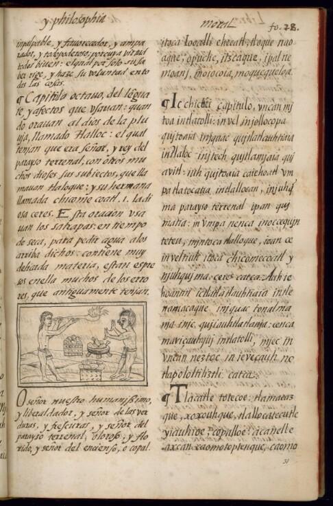 Visual Content and Iconography | huentli nacatl omitl copalli, popochtli tlemaitl, tlapopochhuiloni tlenamacac tletl, tlenenepilli tamalli chiquihuitl, tompiyahtli maxtlatl tlamacazqui tlatlauhtia cuacuahueh tlacatecolotl tzonquemitl molcaxitl iztihuihhuiyac | offering meat bone copal, incense censer thurifer (priest) fire, flame tamale basket, small deep basket loincloth tlamacazqui (priest) to pray horned, cow owl-man, demon, "devil" long loose hair tripod mortar, sauce bowl with long claws or nails | ofrenda carne hueso copal, incienso sahumador sacerdote sahumador fuego, llama tamal chiquihuite, pequeña canasta profunda taparrabo tlamacazqui (sacerdote) rezar que tiene cuernos, vaca hombre-búho, demonio, "diablo" pelo largo suelto molcajete con garras o uñas largas | huentli nacatl omitl copalli tlapopochhuihquetl tlapopochhuihquetl (totahtzin) tlitl, lemeni chichiquilli chiquihuitl, cuachiquihuitl tzinpeztetl [tlamantli totahtzin] motiochihua tlen quipiya icuacua, huacax tlahueliloc, tlen axcualli tzoncalhuehueyac chilcaxitl iztehuehhuehueyac | huentli (nci)offering (eng)ofrenda (spa)huentli (nhe) | nacatl (nci)meat (eng)carne (spa)nacatl (nhe) | omitl (nci)bone (eng)hueso (spa)omitl (nhe) | copalli, popochtli (nci)copal, incense (eng)copal, incienso (spa)copalli (nhe) | tlemaitl, tlapopochhuiloni (nci)censer (eng)sahumador (spa)tlapopochhuihquetl (nhe) | tlenamacac (nci)thurifer (priest) (eng)sacerdote sahumador (spa)tlapopochhuihquetl (totahtzin) (nhe) | tletl, tlenenepilli (nci)fire, flame (eng)fuego, llama (spa)tlitl, lemeni (nhe) | tamalli (nci)tamale (eng)tamal (spa)chichiquilli (nhe) | chiquihuitl, tompiyahtli (nci)basket, small deep basket (eng)chiquihuite, pequeña canasta profunda (spa)chiquihuitl, cuachiquihuitl (nhe) | maxtlatl (nci)loincloth (eng)taparrabo (spa)tzinpeztetl (nhe) | tlamacazqui (nci)tlamacazqui (priest) (eng)tlamacazqui (sacerdote) (spa)[tlamantli totahtzin] (nhe) | tlatlauhtia (nci)to pray (eng)rezar (spa)motiochihua (nhe) | cuacuahueh (nci)horned, cow (eng)que tiene cuernos, vaca (spa)tlen quipiya icuacua, huacax (nhe) | tlacatecolotl (nci)owl-man, demon, "devil" (eng)hombre-búho, demonio, "diablo" (spa)tlahueliloc, tlen axcualli (nhe) | tzonquemitl (nci)long loose hair (eng)pelo largo suelto (spa)tzoncalhuehueyac (nhe) | molcaxitl (nci)tripod mortar, sauce bowl (eng)molcajete (spa)chilcaxitl (nhe) | iztihuihhuiyac (nci)with long claws or nails (eng)con garras o uñas largas (spa)iztehuehhuehueyac (nhe) |