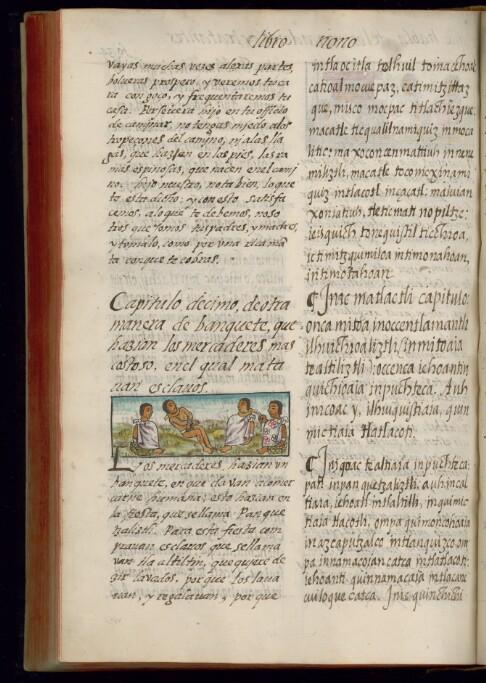 Visual Content and Iconography | ilhuicatl malli, tlacohtli mecatl tilmahtli zacatl (grass) tlalia maxtlatl oquichtli xochitl, xoxochyoh, xochimoyahuac (machiyotl) cuauhcozcatl onoc mailpia pochtecatl | sky captive, enslaved person cord, rope cloak grass to sit loincloth man flower (motif, pattern) wooden collar to lie down to tie someone's hands merchant | cielo cautivo, persona esclavizada mecate, cuerda tilma, manta zacate sentar taparrabo hombre flor (motivo, patrón) collar de madera estar acostada/o, echada/o atar las manos de alguien comerciante | elhuicatl tzauctoc, tepalehuihquetl mecatl tilma zacatl mocehuihtoc tzinpeztetl tlacatl xochitl tlamachihchihualli, xochitlacopinalli (nezcayotl) huapalcoztli moteca maihilpia, mailpia tlanamacaquetl | ilhuicatl (nci)sky (eng)cielo (spa)elhuicatl (nhe) | malli, tlacohtli (nci)captive, enslaved person (eng)cautivo, persona esclavizada (spa)tzauctoc, tepalehuihquetl (nhe) | mecatl (nci)cord, rope (eng)mecate, cuerda (spa)mecatl (nhe) | tilmahtli (nci)cloak (eng)tilma, manta (spa)tilma (nhe) | zacatl (grass) (nci)grass (eng)zacate (spa)zacatl (nhe) | tlalia (nci)to sit (eng)sentar (spa)mocehuihtoc (nhe) | maxtlatl (nci)loincloth (eng)taparrabo (spa)tzinpeztetl (nhe) | oquichtli (nci)man (eng)hombre (spa)tlacatl (nhe) | xochitl, xoxochyoh, xochimoyahuac (machiyotl) (nci)flower (motif, pattern) (eng)flor (motivo, patrón) (spa)xochitl tlamachihchihualli, xochitlacopinalli (nezcayotl) (nhe) | cuauhcozcatl (nci)wooden collar (eng)collar de madera (spa)huapalcoztli (nhe) | onoc (nci)to lie down (eng)estar acostada/o, echada/o (spa)moteca (nhe) | mailpia (nci)to tie someone's hands (eng)atar las manos de alguien (spa)maihilpia, mailpia (nhe) | pochtecatl (nci)merchant (eng)comerciante (spa)tlanamacaquetl (nhe) |